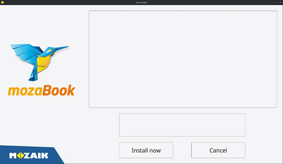 Tip Stiahnite a skopírujte mozaBook inštalačný program do toho istého priečinku, z ktorého ste spustili prednastaveného pomocníka Linuxu! Týmto spôsobom prednastavený pomocník Linuxu po príprave prostredia okamžite spustí inštalačný program mozaBooku.