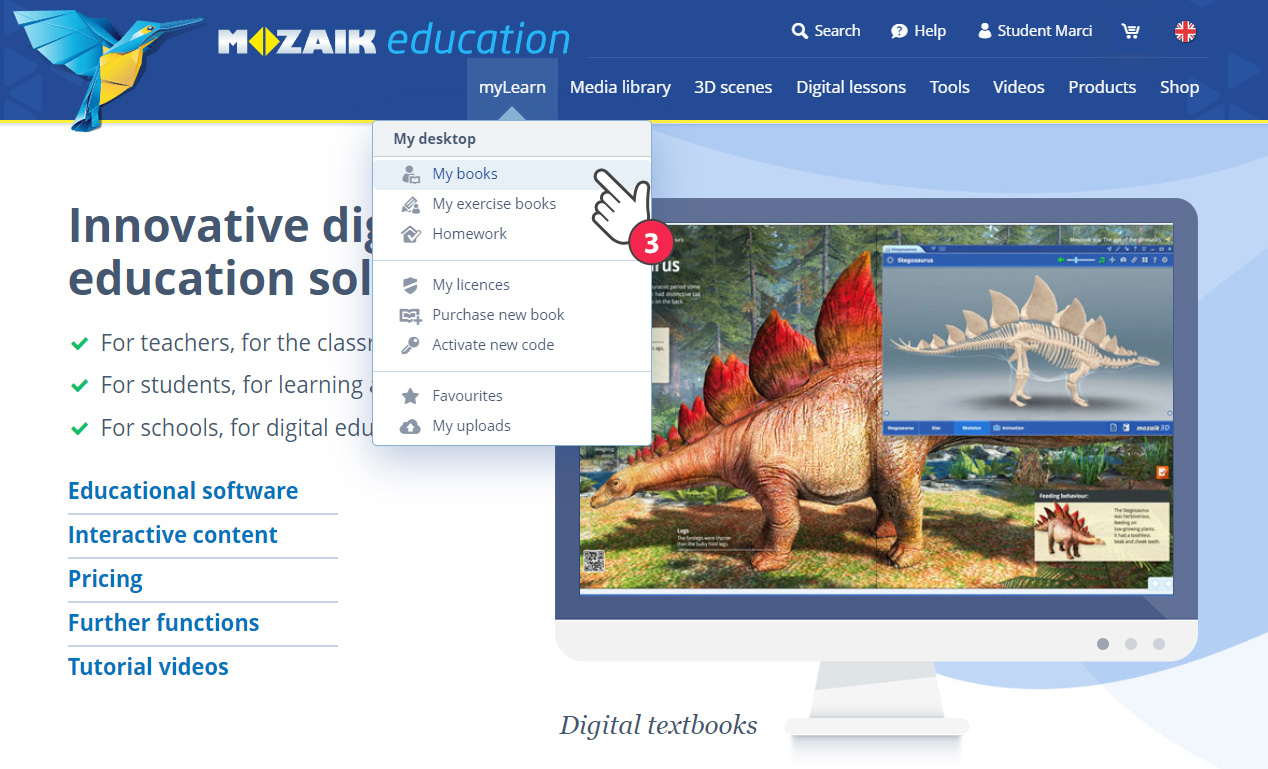 Before you can use the digital publications, you must activate them. This means that you have to assign the book to your mozaWeb user account. If you purchased the book for yourself, you can immediately assign it to your account after purchase (2).
