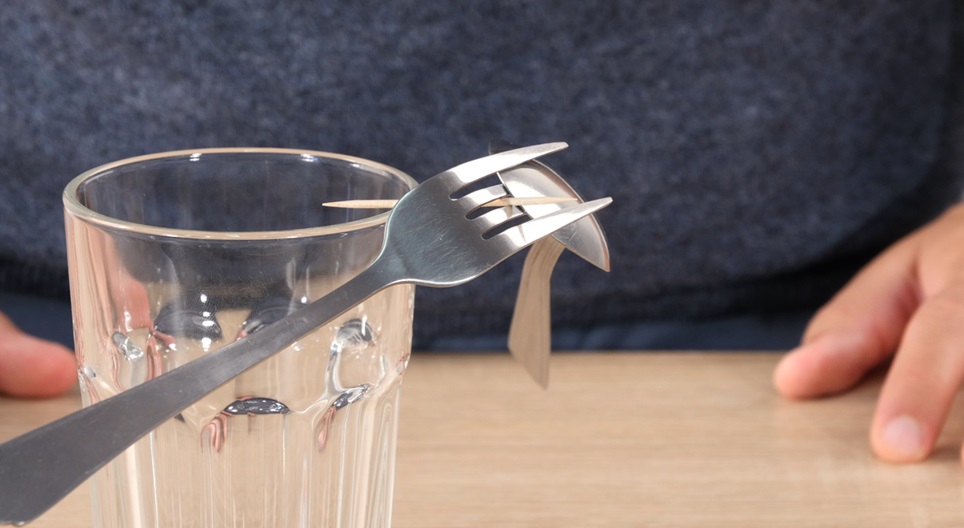 Да удивим приятелите си с един малък балансиращ трик с помощта на вилица, лъжица, клечка за зъби и една обикновена стъклена чаша.