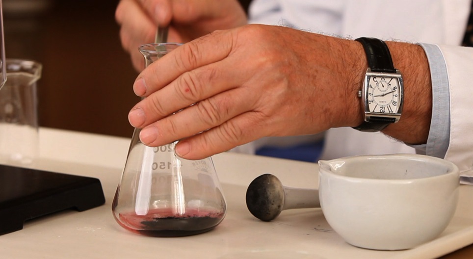 Изчистване на разтвор, оцветен с маджента, с гранули от активен въглен и филтриране.