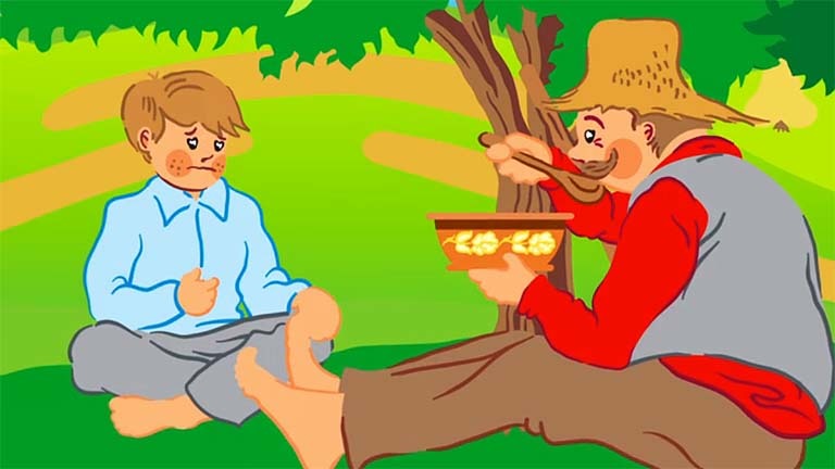 Малкият Янко не искал да помага на баща си да прекопаят градината. Предпочитал да си почива. Но който не работи, той и не яде!