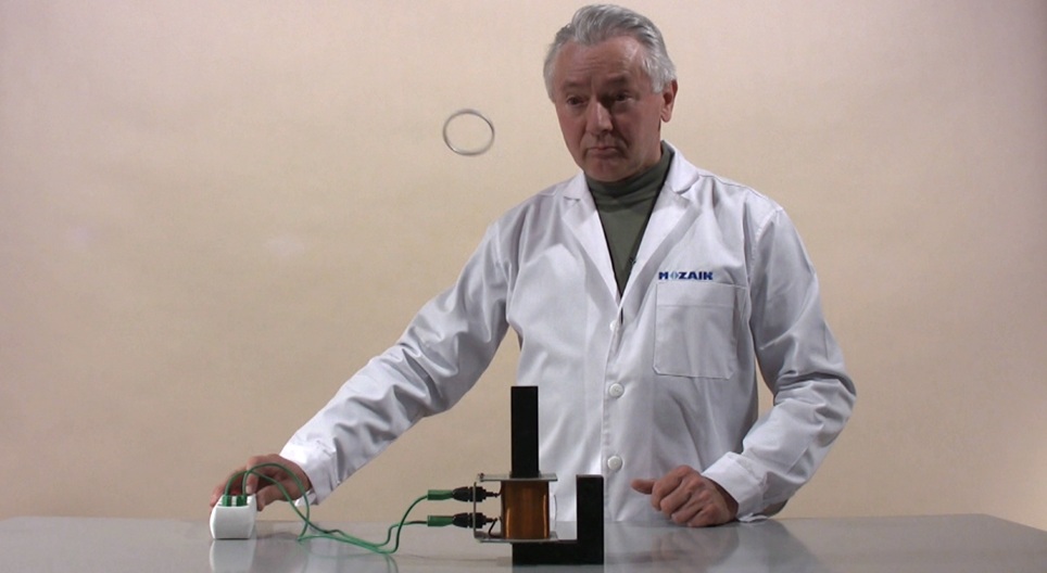 Let’s see what happens when we place an aluminium ring on an electromagnetic coil and pass an electric current through the coil.