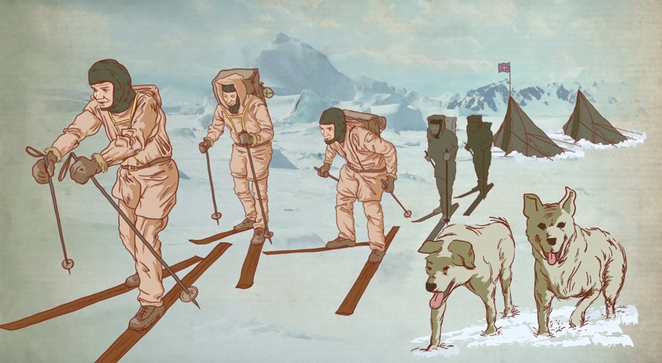 Антарктика е една от най-късно откритите територии на Земята. Видеоклипът показва двете най-известни експедиции до Южния полюс.