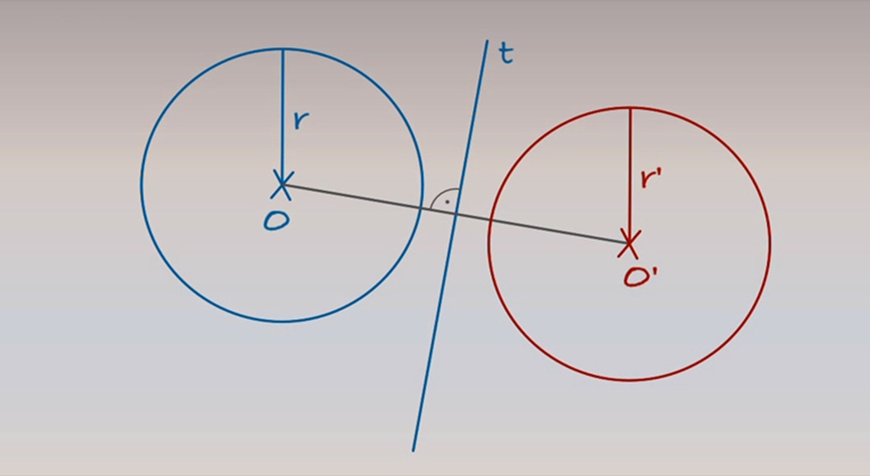 В дадена равнина иаме една ос t и един кръг с център O и радиус r. Да начертаем огледалния образ на кръга!