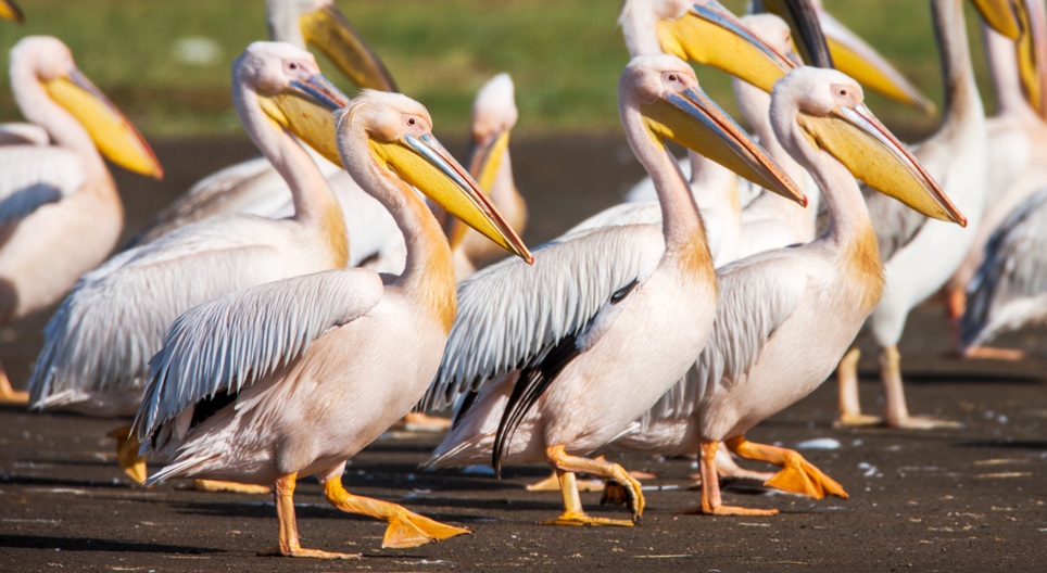 Пеликаните са силно защитени птици. Разпознават се по огромната кожна торба под клюна.