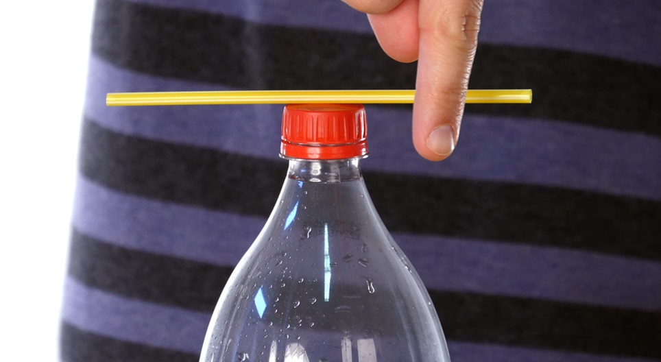 Как да завъртим една сламка върху гърлото на бутилка без да я докосваме?