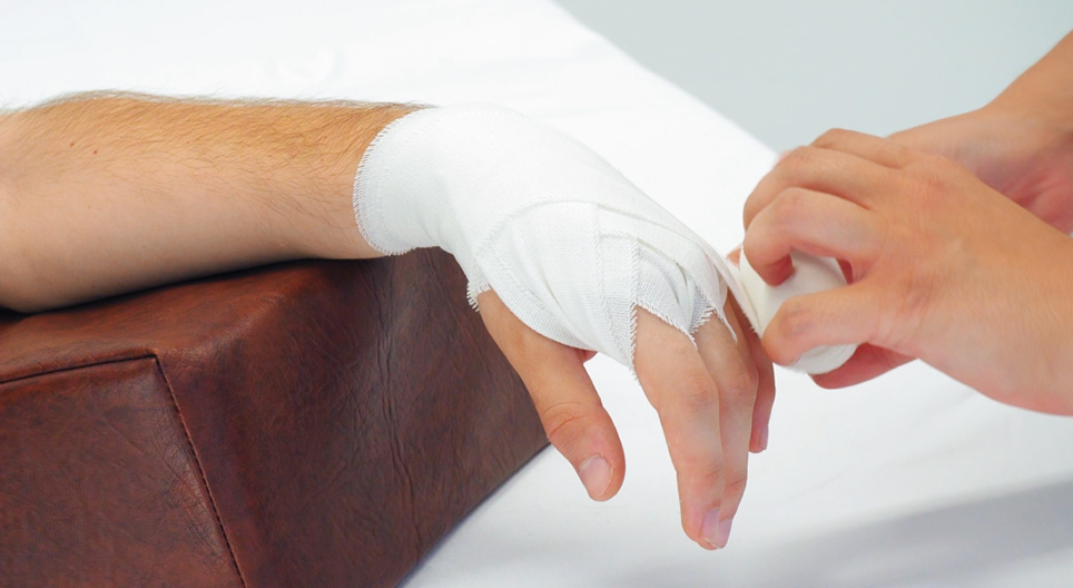 Our video presents the steps for bandaging a hand with rheumatoid arthritis.