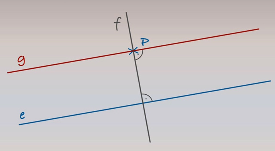 Let’s plot line g such that it is parallel to line e and passes through point P.