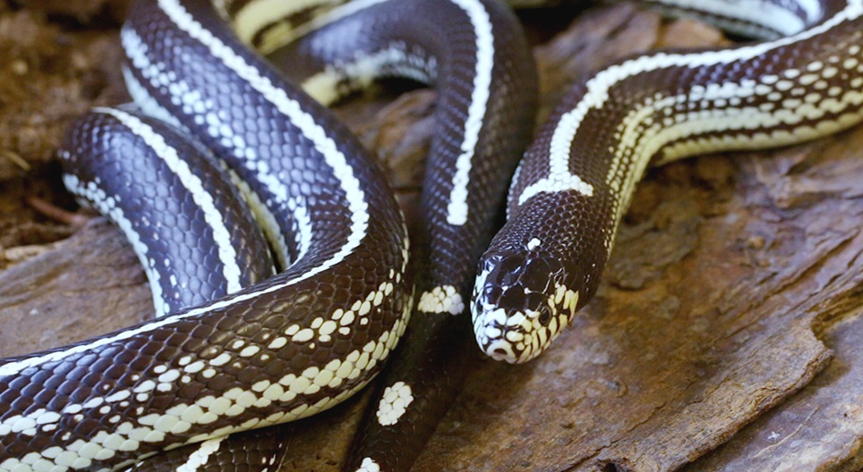 The California kingsnake is one of the most popular species of pet reptiles. It was named after its habit to consume other snakes every now and then.