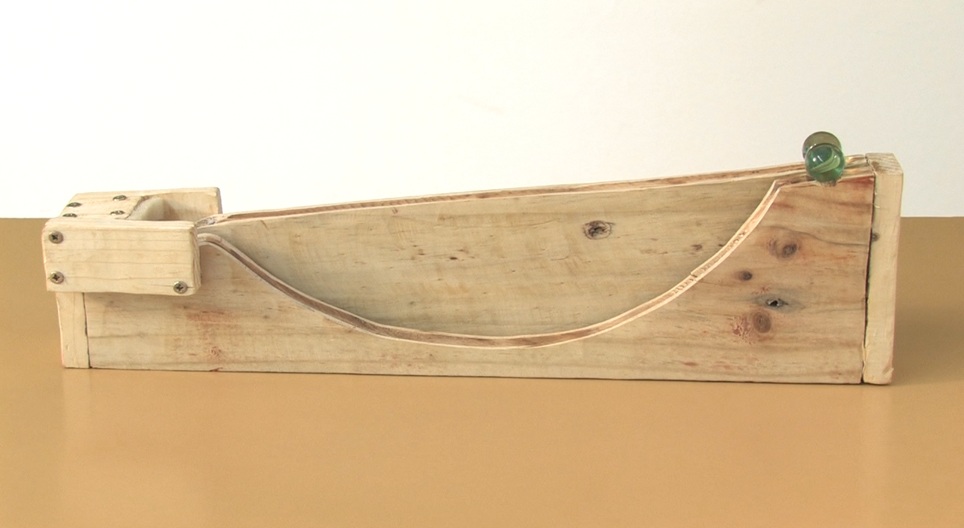 Find out whether the marble reaches the finish line faster on the straight or on the curved slope.