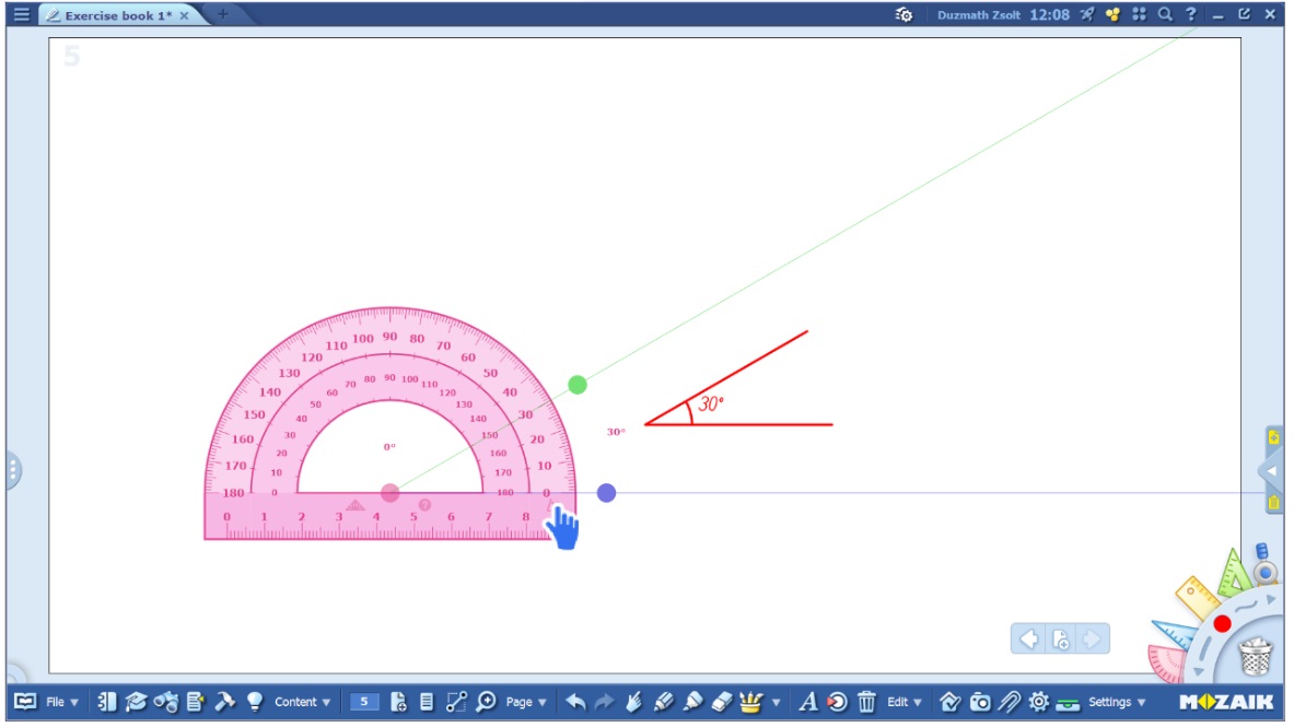 ► Mathematics teachers will love our new feature updates on our geometry tools. By clicking on the rotation option on the tool (ruler or protractor) a 15 degree rotation marker will appear. By dragging the tool between the dotted lines, it will automatically snap to the next dot in 15 degrees increments. Dragging outside of the dotted line area will ignore the snapping points and will rotate smoothly without snapping.