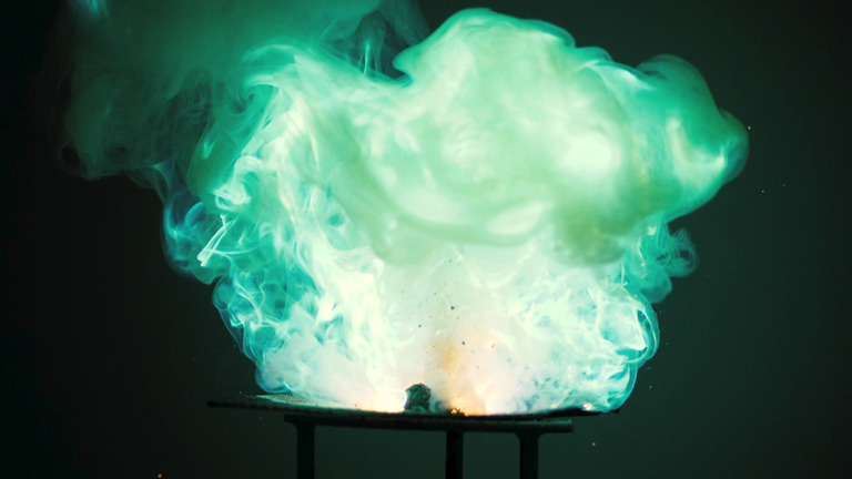 Kénpor és cinkpor melegítés hatására reagálnak egymással, miközben hő szabadul fel.
