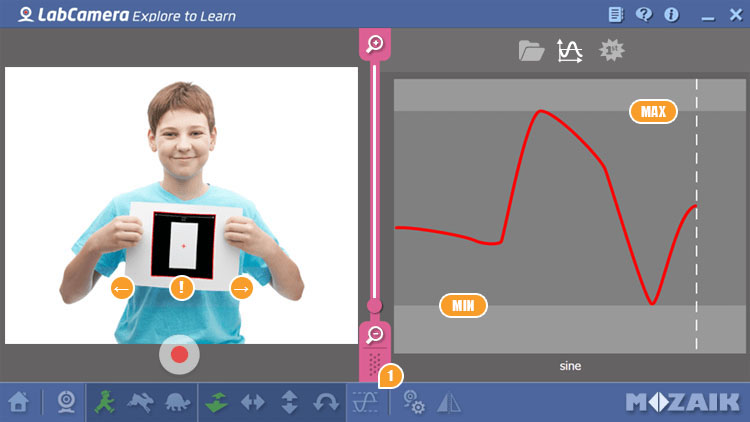 Når et objekt er valgt til følgning, skal du kalibrere bevægelsesområdet for at sikre at objektets bevægelser kan nå de højeste og laveste værdier på kurven. Efter kalibrering kan du anvende Graph Challenge så mange gange du ønsker, forudsat at placeringen af kameraet og det fulgte objekt er det samme som ved kalibreringen.