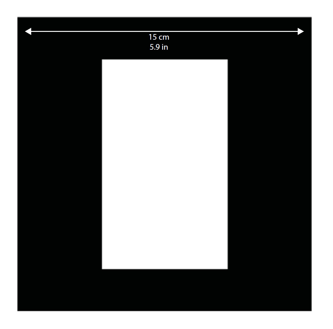 Hvis du vil anvende den foruddefinerede markør til følgning, skal du blot trække markøren ind i kameraets synsvinkel. Den bliver øjeblikkeligt genkendt og du kan starte kalibrering eller matchning af kurve med det samme. BEMÆRK: når du holder markøren, skal det sikres at hele markøren er synlig - den sorte ramme må ikke blive dækket af dine fingre.