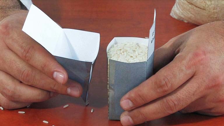 Deneyde prizma hacminin kare piramidin hacminden üç kat daha büyük olduğunu ispatlarız.